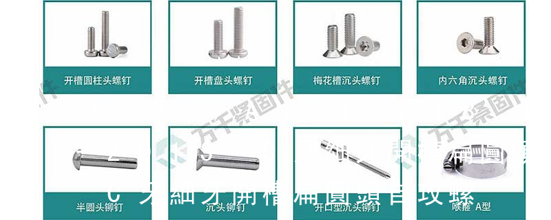 – ASME)(美標) BS (英制) IFI =Industrial Fastener Institute是美國工業(yè)緊固件協(xié)會的標準 BA (英制) 2 螺紋 M. MF (公制牙) UNC.(美制粗牙) UNF (美制細牙) UNEF (美制超細牙) B.S.W. 標準惠氏粗牙 自切自攻螺釘有以下幾種型式:十字槽盤頭自切自攻螺釘,十字槽沉頭自切自攻螺釘。十字槽半沉頭自切自攻螺釘,六角頭自切自攻螺釘。3、自擠自攻螺釘(自攻鎖緊螺釘)自擠自攻螺釘?shù)穆菁y一般為機螺紋,很少采用自攻螺紋。在扳擰