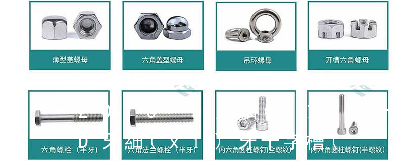 主要分類包括普通螺絲、機(jī)螺絲、自攻螺絲和膨脹螺絲三種。 有頭螺釘Cap screw 過去限于全牙的扣件。 六角頭螺釘Hex cap screw與大六角螺栓Hex bolt 顧名思義為頭部為六角型的外螺紋扣件,設(shè)計(jì)為使用扳手轉(zhuǎn)動(dòng)。依照ASME B18.2.1標(biāo)準(zhǔn),六