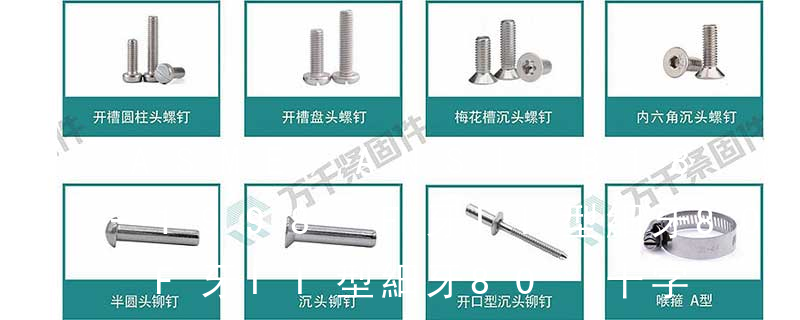 B:球面圓柱頭; C:圓柱頭; F(K):沉頭; H:六角頭;HW:六角頭帶墊圈; O:半沉頭; P:平元頭; R:半元頭;PW:平元頭帶墊圈; T:大扁頭; V:蘑菇頭;④ 螺釘牙型 A:自攻尖尾(日標第1種)疏 外扳擰:六角、六角法蘭面、六角凸緣、六角花形等;內(nèi)扳擰:一字槽、十字槽H型、十字槽Z型、十字槽F型、四方槽、復(fù)合槽、內(nèi)花鍵、內(nèi)六角花形、內(nèi)三角、內(nèi)六角、內(nèi)12角、離合器槽、六葉片型槽、高扭矩十字槽等。3、